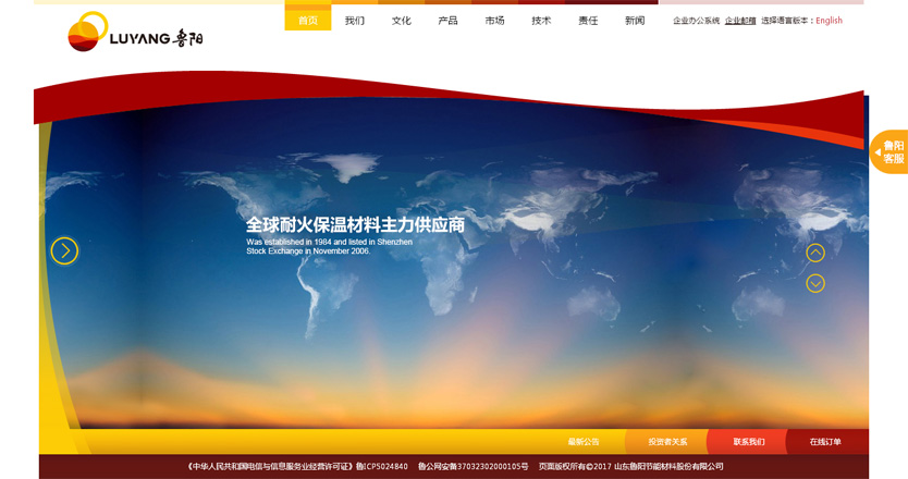 山東魯陽節(jié)能材料股份有限公司始建于1984年,2006年11月在深圳證券交易所上市,是集陶瓷纖維、玄武巖纖維、輕質(zhì)耐火磚等節(jié)能材料研發(fā)、制造、銷售等于一體的中外合資企業(yè)。